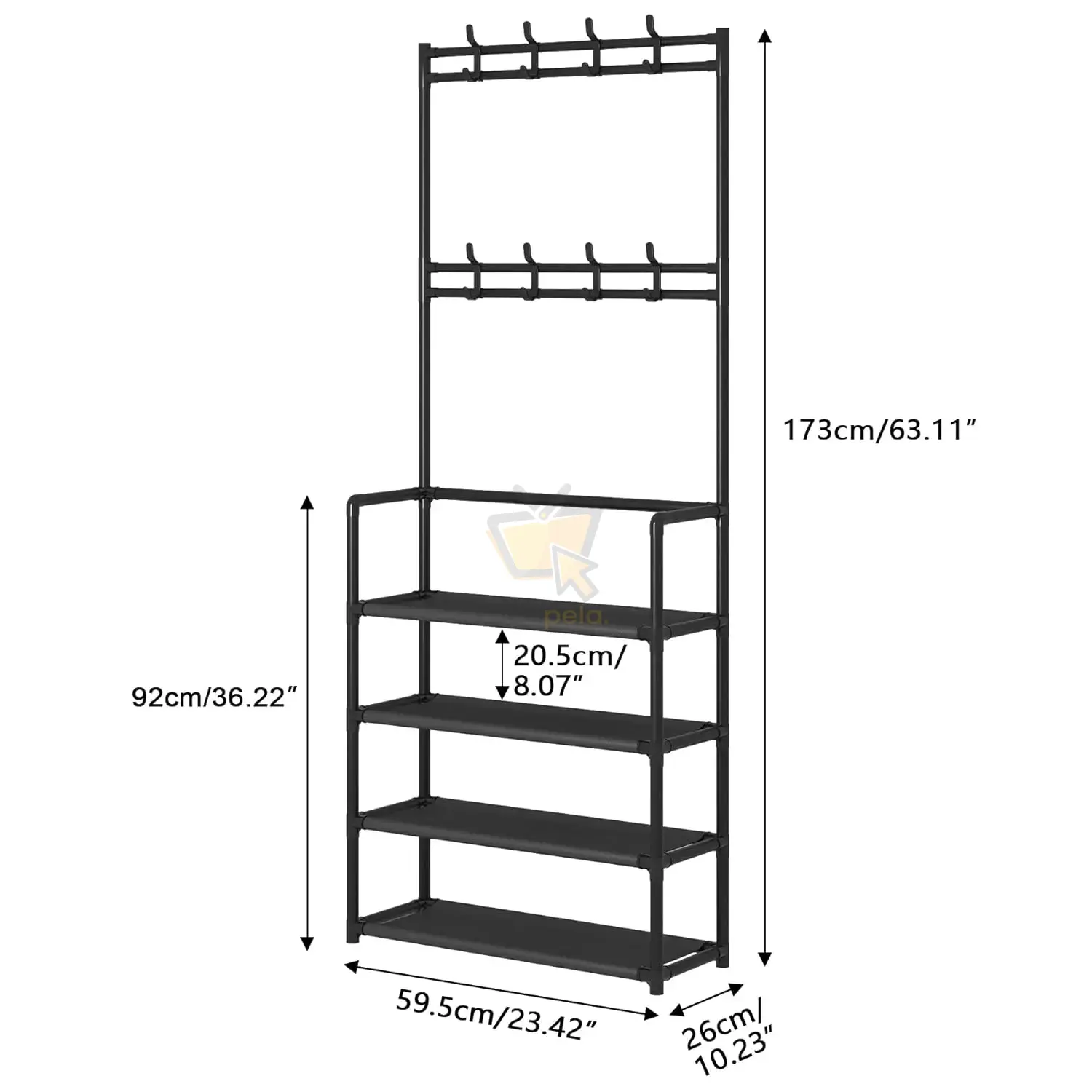 4-Floor Coat Hanger & Shoe Rack – The perfect storage solution to neatly organize your clothes, shoes, coats, and bags.