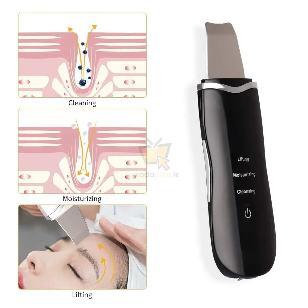 Ultrasonic Facial Scrubber එක භාවිතා කර ගැඹුරු pores පිරිසිදු කිරීම, blackhead ඉවත් කිරීම, අතිරික්ත තෙල් පාලනය සහ සාමන්ය මෘදු exfoliation ලබා දෙයි.